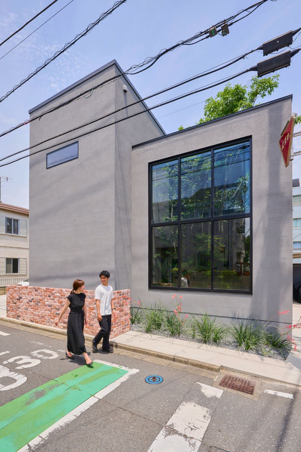十字路に隣接する「R HOUSE」は、南側に接道している道路がスクールゾーンとして指定されているため、朝から夕方までは多くの歩行者が往来する環境であった。