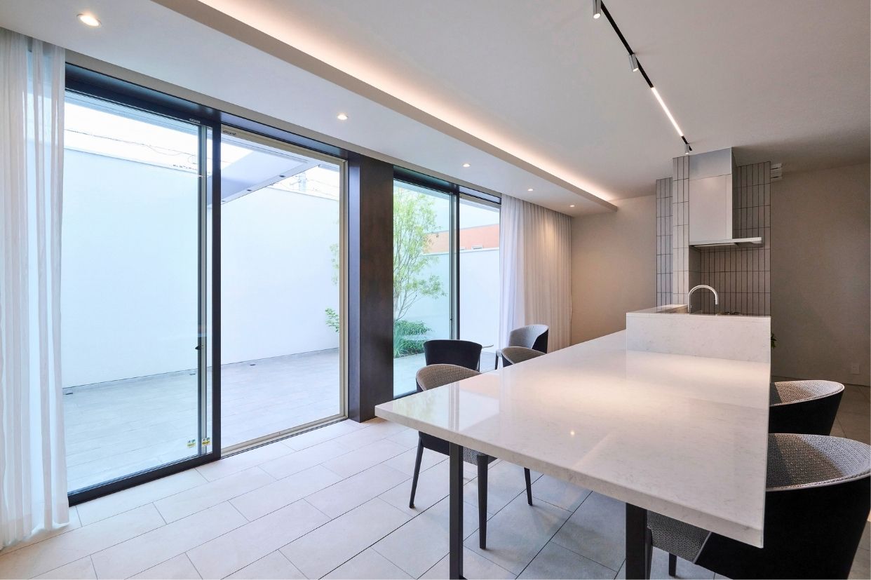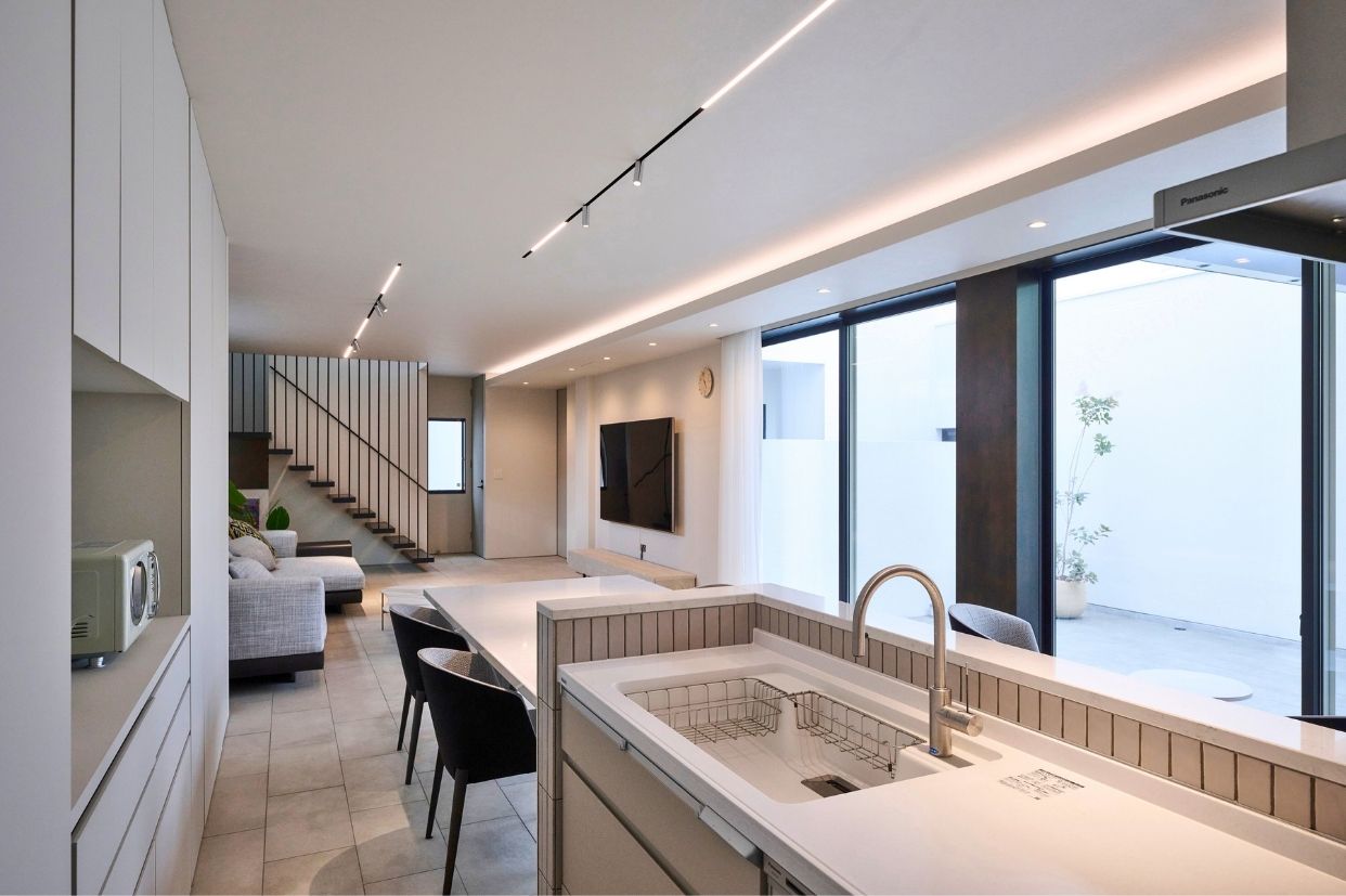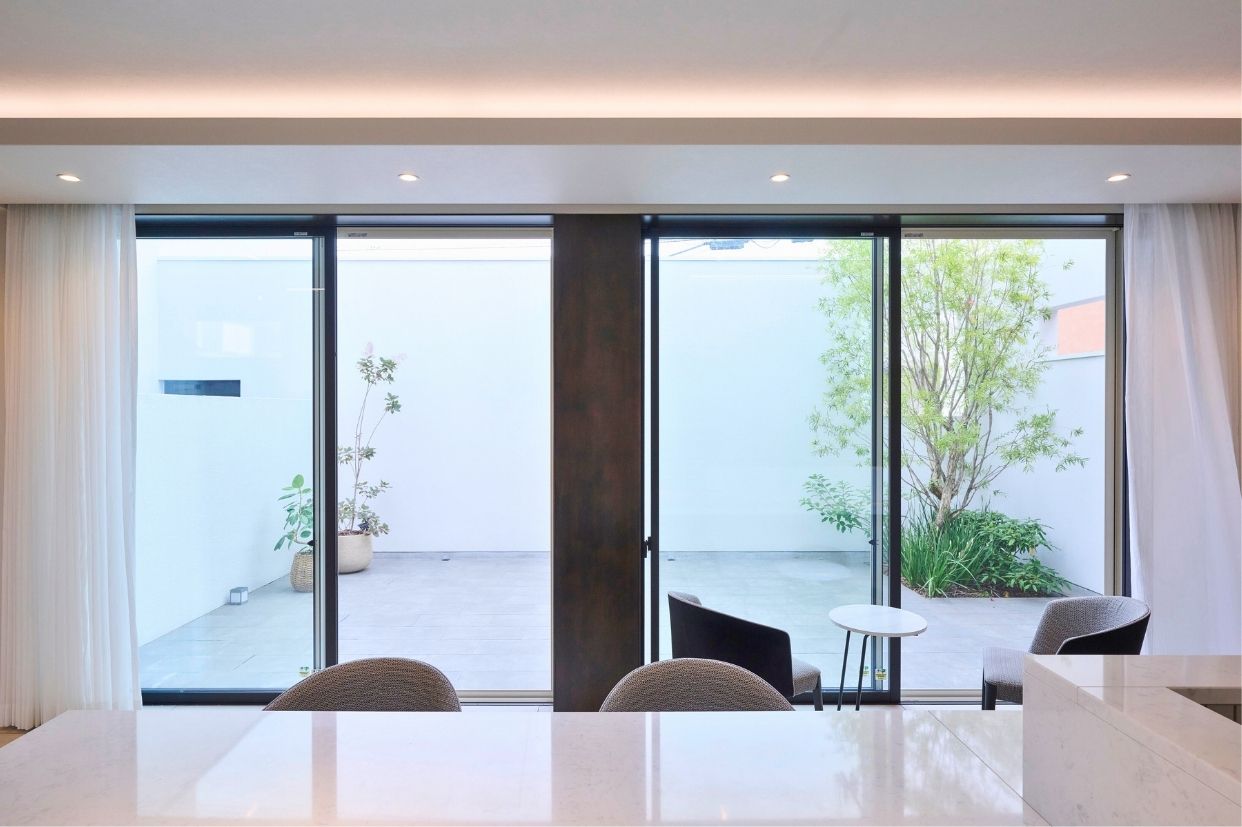 パブリックスペースとプライベートスペースの相互接続も可能にするライトコートハウス