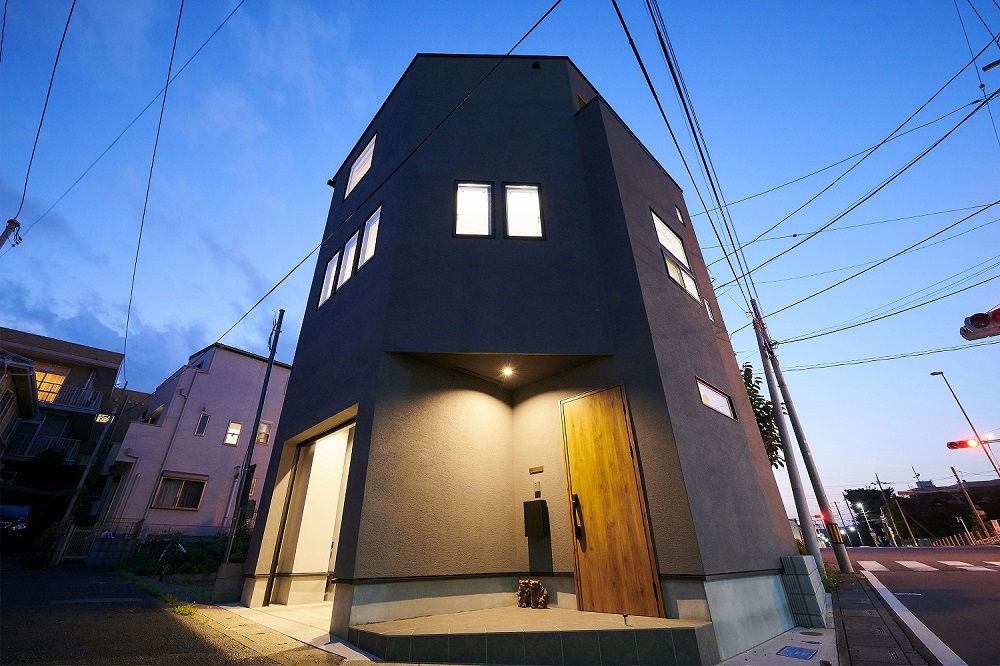 角地の立地を活かし、趣味を楽しむ暮らしを叶えた3階建ての家です。