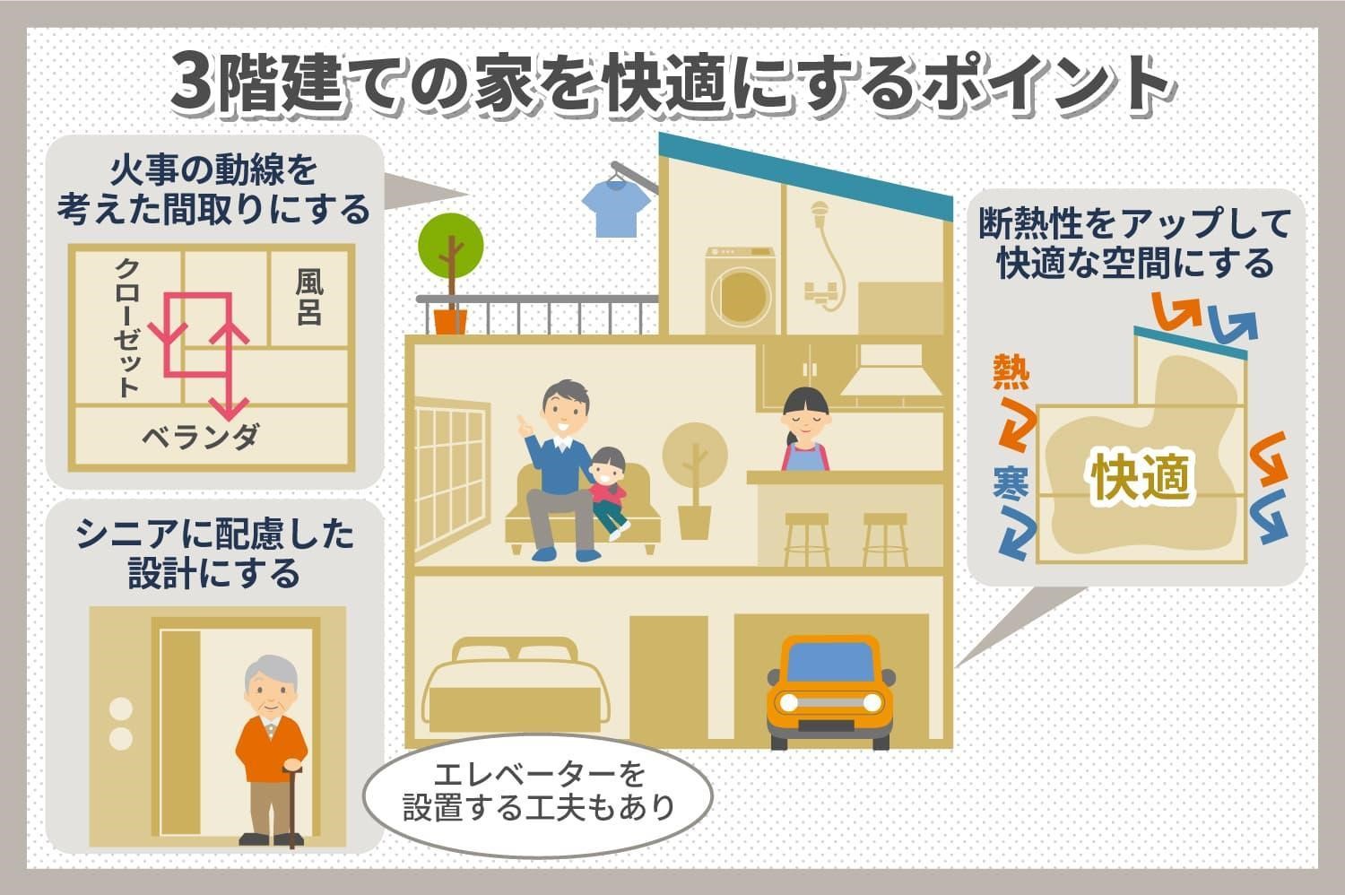 そこで、ここからは3階建ての家のデメリットを補い、快適に過ごすために意識したいポイントを説明していきます。