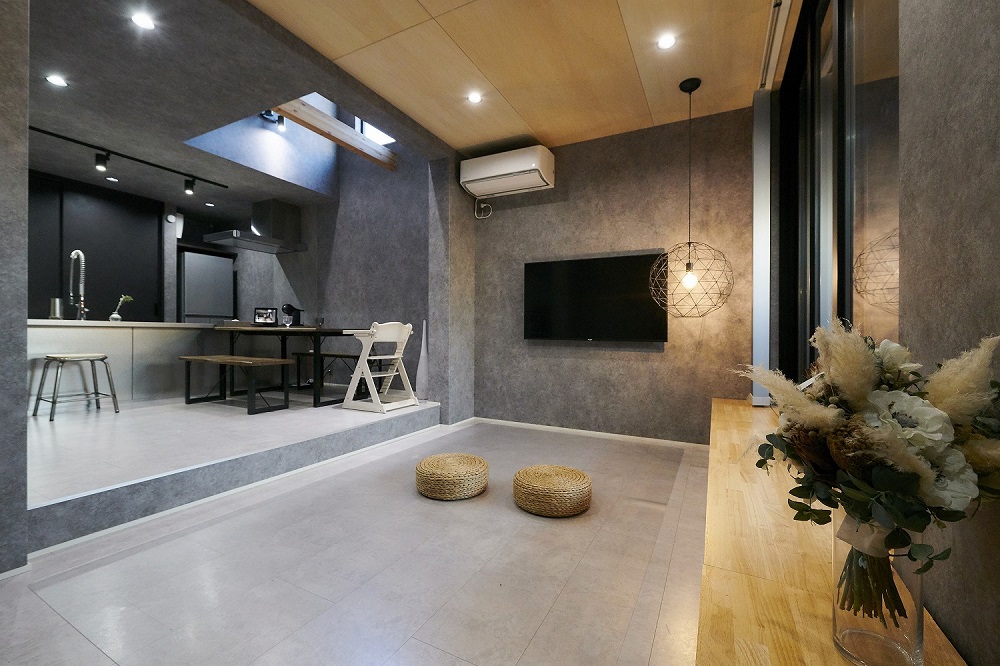 施主さまのご要望を基に、グレーと黒のモノトーンでまとめたスタイリッシュな家です。