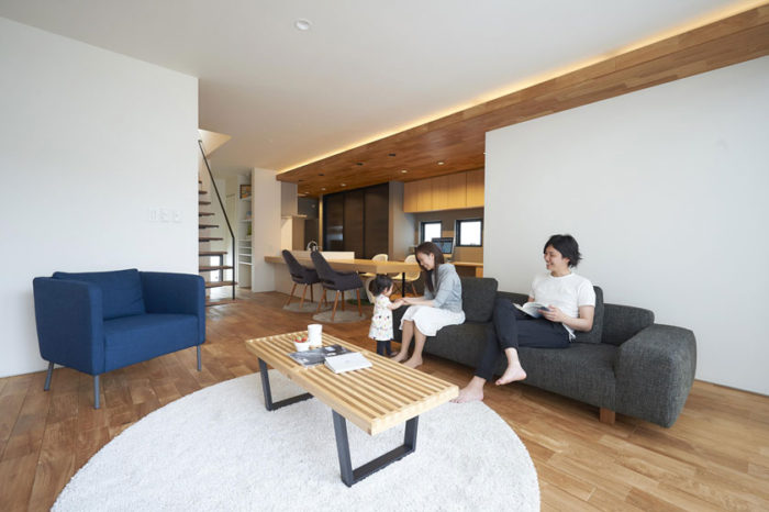 埼玉県さいたま市の体感すまいパーク東浦和にある家で、建築面積67.16㎡、延床面積133.23㎡の事例です。全体的に「和」をイメージしたデザインになっており、仕切りが極力排除されているのが特徴となっています。