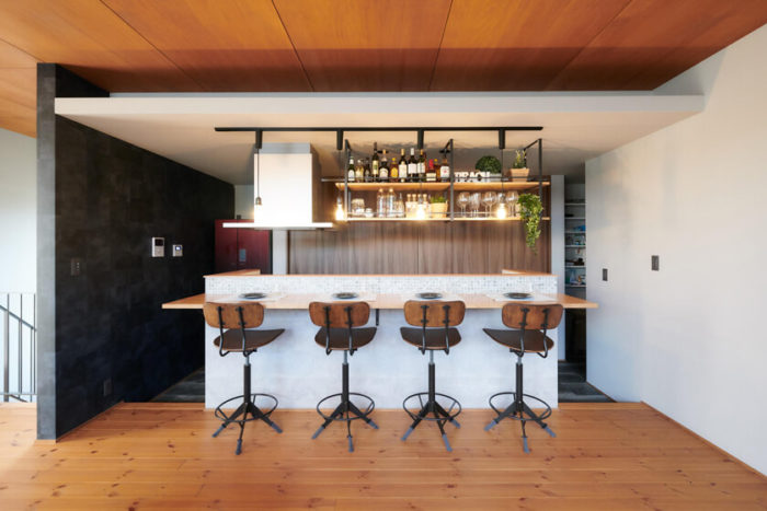 またカウンター部分を配膳台として使えるため、料理の受け渡しがスムーズになり、家事動線を整えやすいというメリットもあります。視覚的なすっきり感と実用性を両立したい場合に適したスタイルです。