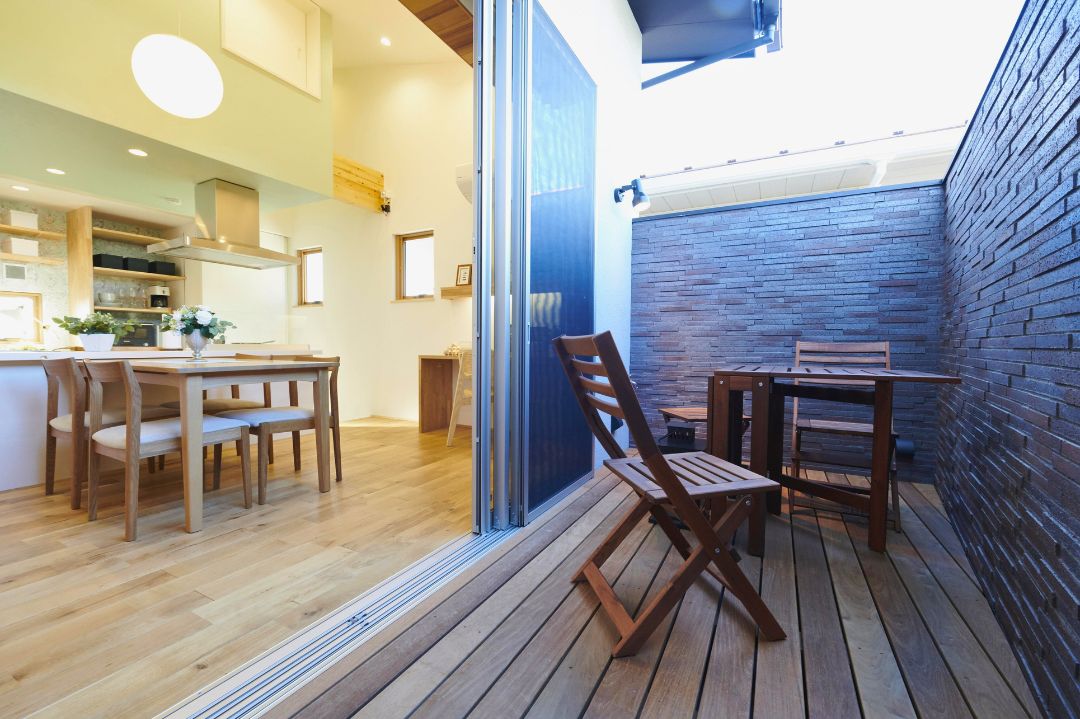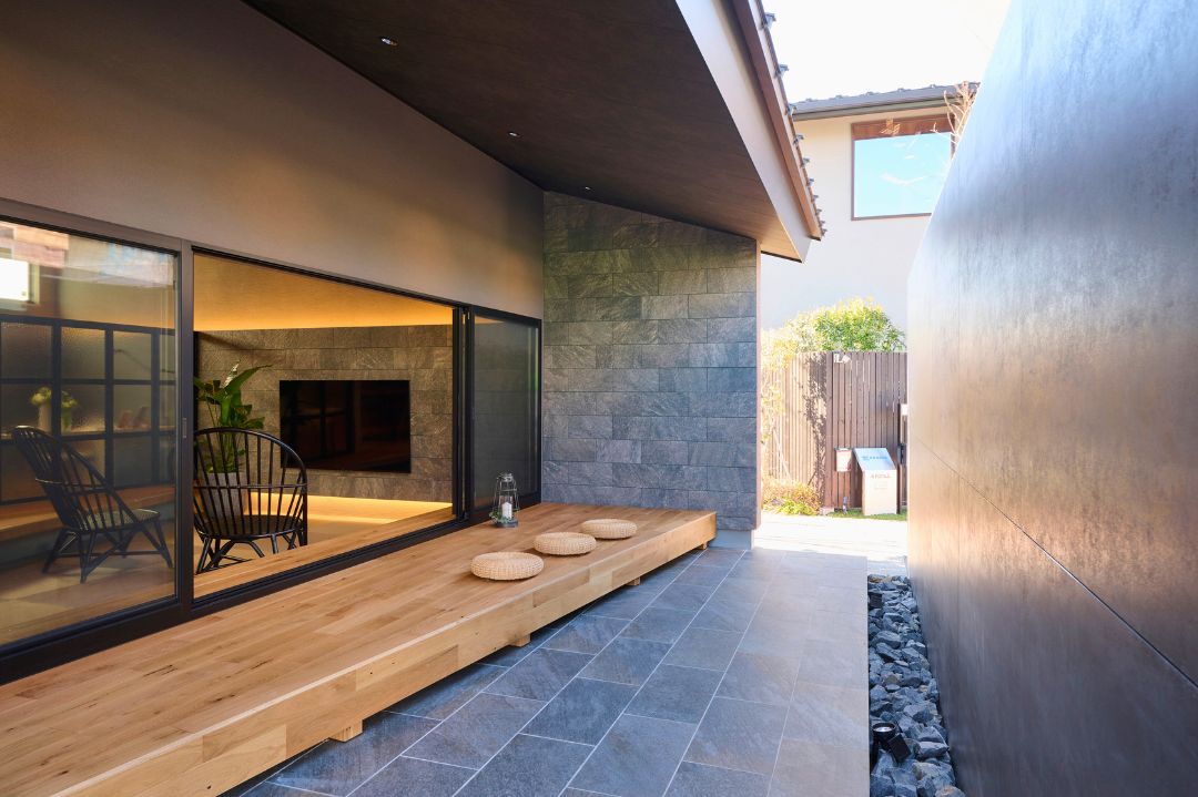 広縁を絡めたアウトドアリビングは、四季折々の行事を楽しみ、家族や友人が集う場に。