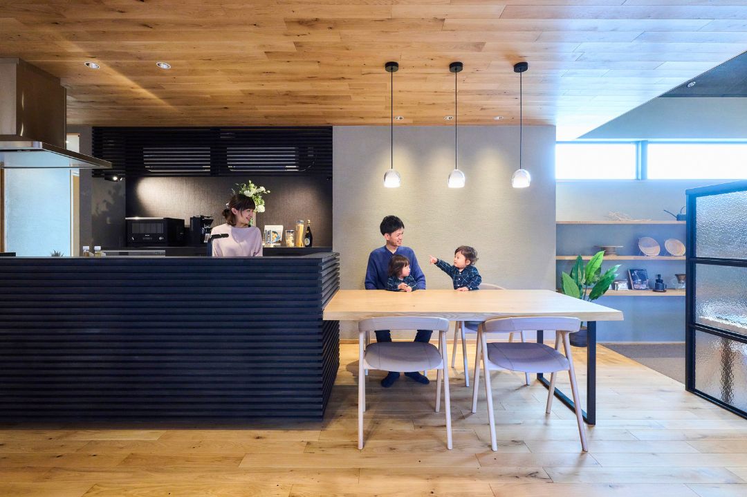 キッチンを中心としたゾーニングにより最適な家事動線を実現。