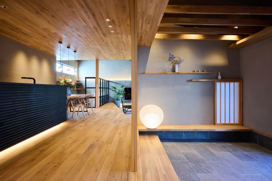 見え掛かりを利用した開放性を確保しつつ水回りへの視線に配慮し、開放感と使いやすさを併せ持たせました。欄間・障子による開放性や視線の調整・採光・換気、程よく気配を感じさせる曖昧さ等、和の文化を継承しています。