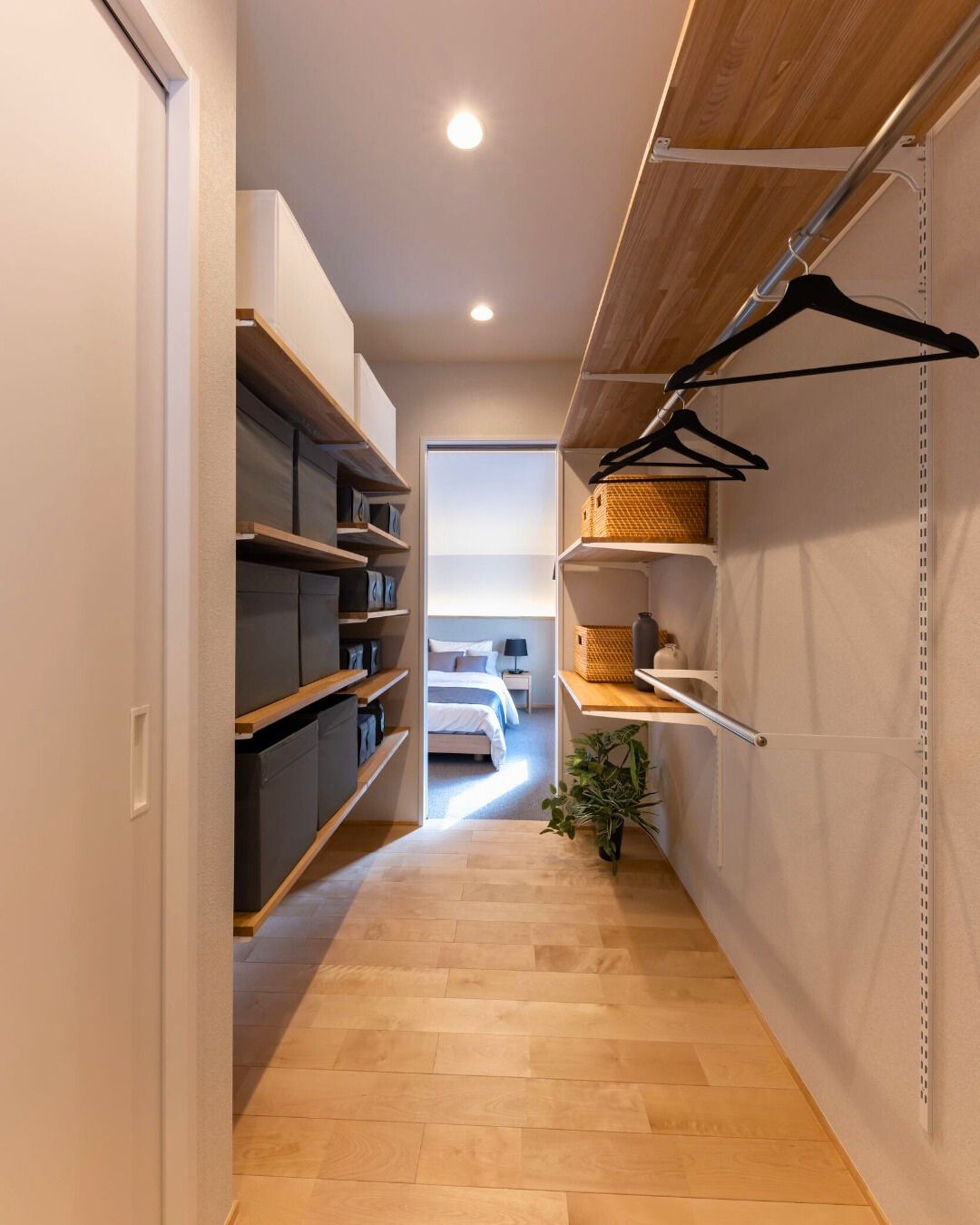 洋室へと繋がるスペースは、家族みんなで使えるウォークスルークロゼットとしています。