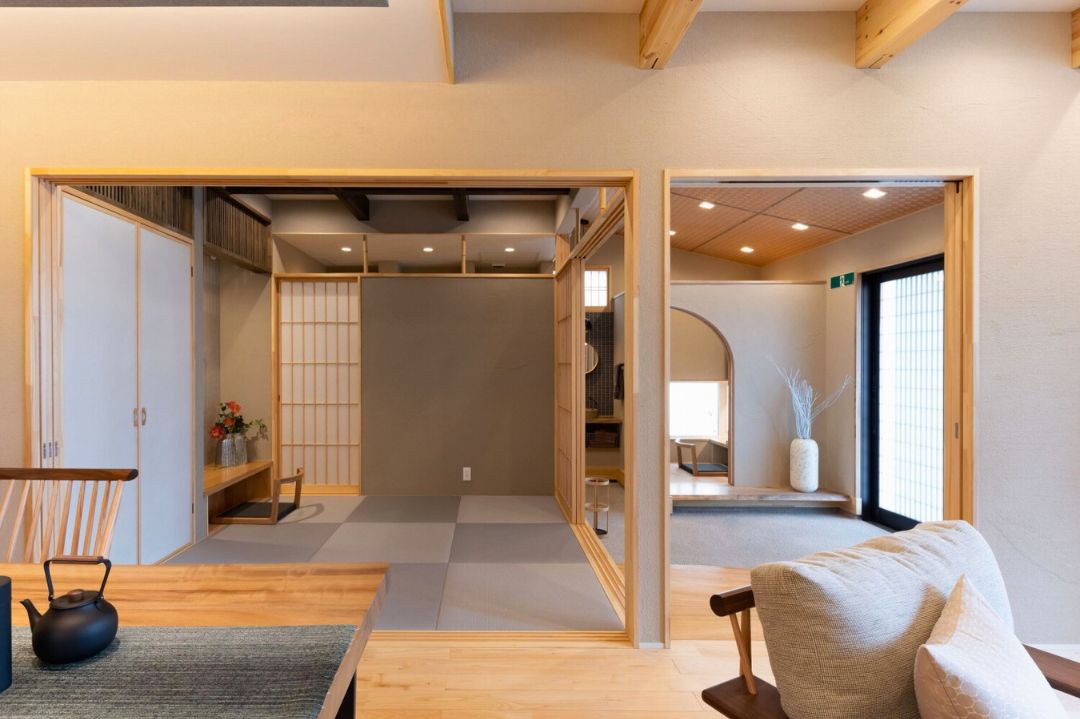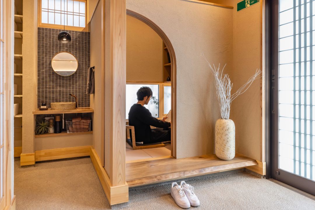 旅館のエントランスを感じさせる土間空間や、個人の空間は確保されながらも人の気配を感じるスタディスペース、非日常が日常になる、素敵な空間提案を是非ご体感ください。
